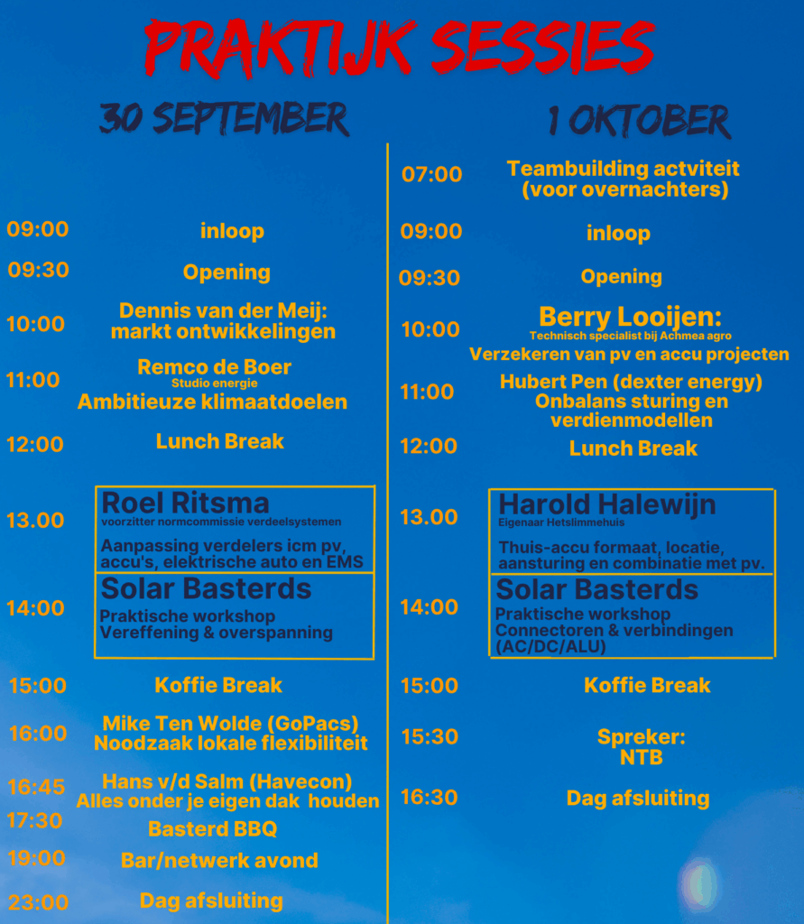 De Praktijk Route is voor installateurs, technici, inspecteurs en uitvoerders die dagelijks met hun handen aan de systemen zitten. Geen gelul, gewoon realiteit: hoe pas je een verdeler aan zonder brokken? Hoe plaats je accu’s die niet in de fik vliegen? Hoe los je storingen op, deal je met bliksembeveiliging en zorg je dat je AC- en DC-verbindingen wél kloppen? Je krijgt technische verdieping, praktijkfouten uit het veld en toepasbare inzichten van o.a. de Solar Basterds, Harold Hallewijn en Roel Ritsma.