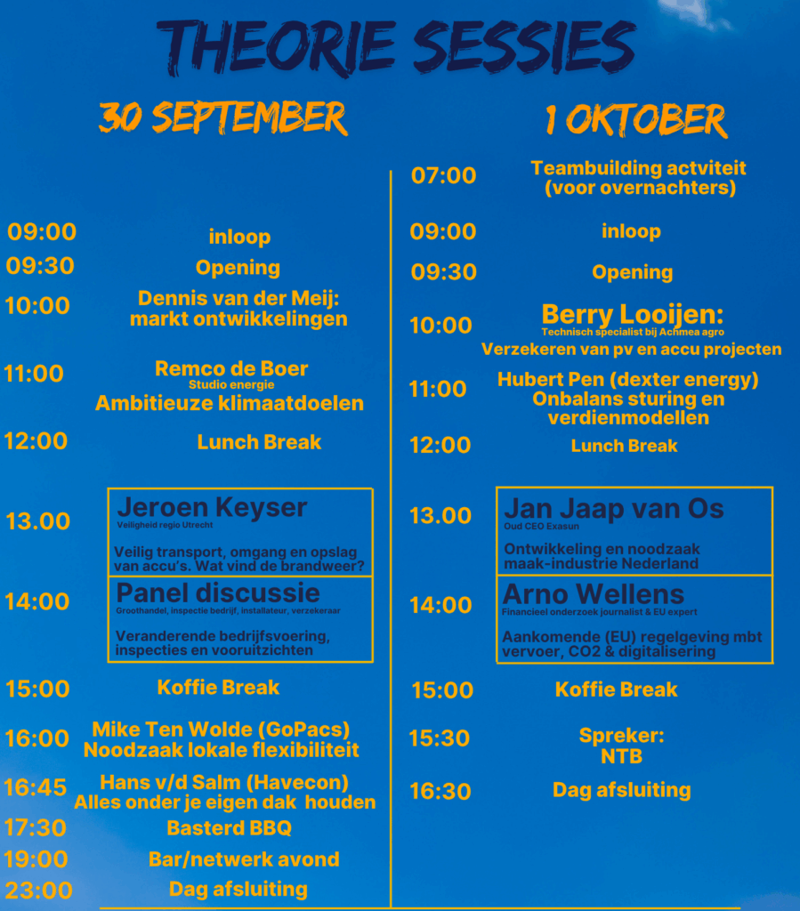 De Theorie Route is voor beleidsmakers, adviseurs, opdrachtgevers en projectleiders die niet zelf aansluiten, maar wel eindverantwoordelijk zijn voor rendement, veiligheid en strategie. Hier leer je hoe je risico’s écht beoordeelt, hoe je projecten verzekerbaar krijgt, en waarom je beleid alleen hout snijdt als je weet waar je het over hebt. Denk aan netflexibiliteit, nieuwe CO₂-regelgeving en eerlijke duiding van verdienmodellen zonder verkooplawaai. Sessies met inhoud gebracht door scherpe geesten als Jeroen Keyser, Arno Wellens en Jan Jaap van Os.